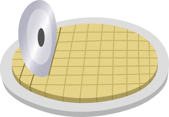 | 1 | ウェーハの裏面をパッケージデザインにあわせて薄くします。チップサイズ、もしくは指定のサイズに個片化します。 | ブレード | ウェーハ径: Max Φ12inch |