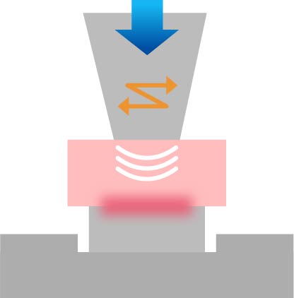 超音波接合を使って絶縁基板の回路パターンとリードフレームを電気的に接続し、高耐熱・高信頼な接合を形成します。 超音波接合 端子厚:t=1.0mm
