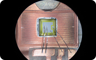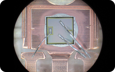 チップとリードフレームや基板・パッケージをボンディングワイヤーで電気的に接続し、低抵抗・高信頼でモールド等に耐える接合を形成します。 ウェッジ
